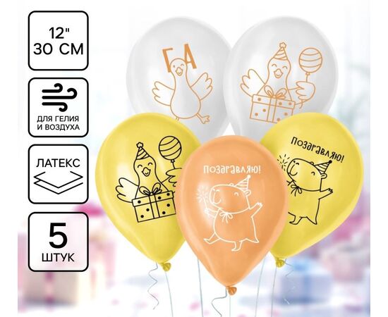 Воздушные шарики латексные "Гусь и капибара", 5 шт, диаметр 30 см