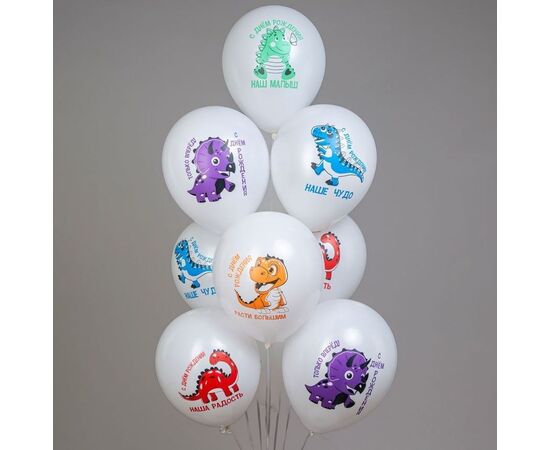 Воздушные шарики латексные "С днём рождения наш малыш. Динозаврики", 25 шт, диаметр 30 см