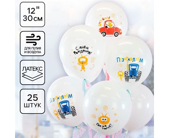Воздушные шарики латексные "Синий трактор и Котенок Котэ", 25 шт, диаметр 30 см