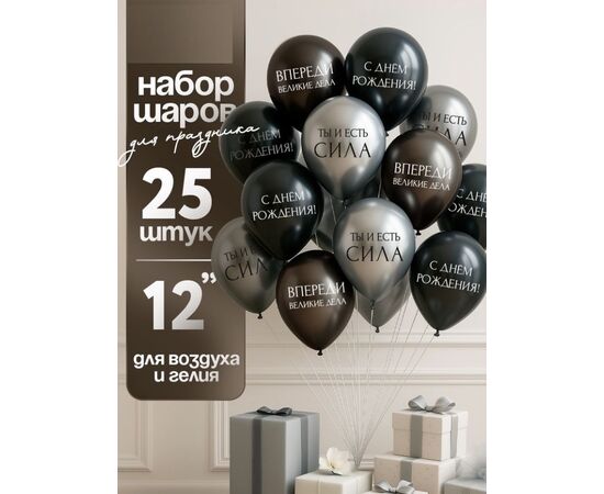 Воздушные шары "С днём рождения. Ты- сила", 25 штук по 12 дюймов