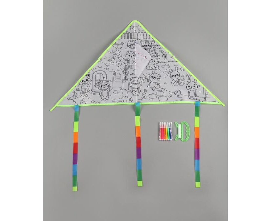 Воздушный змей-раскраска "Зверятки", 6 фломастеров, 80 см