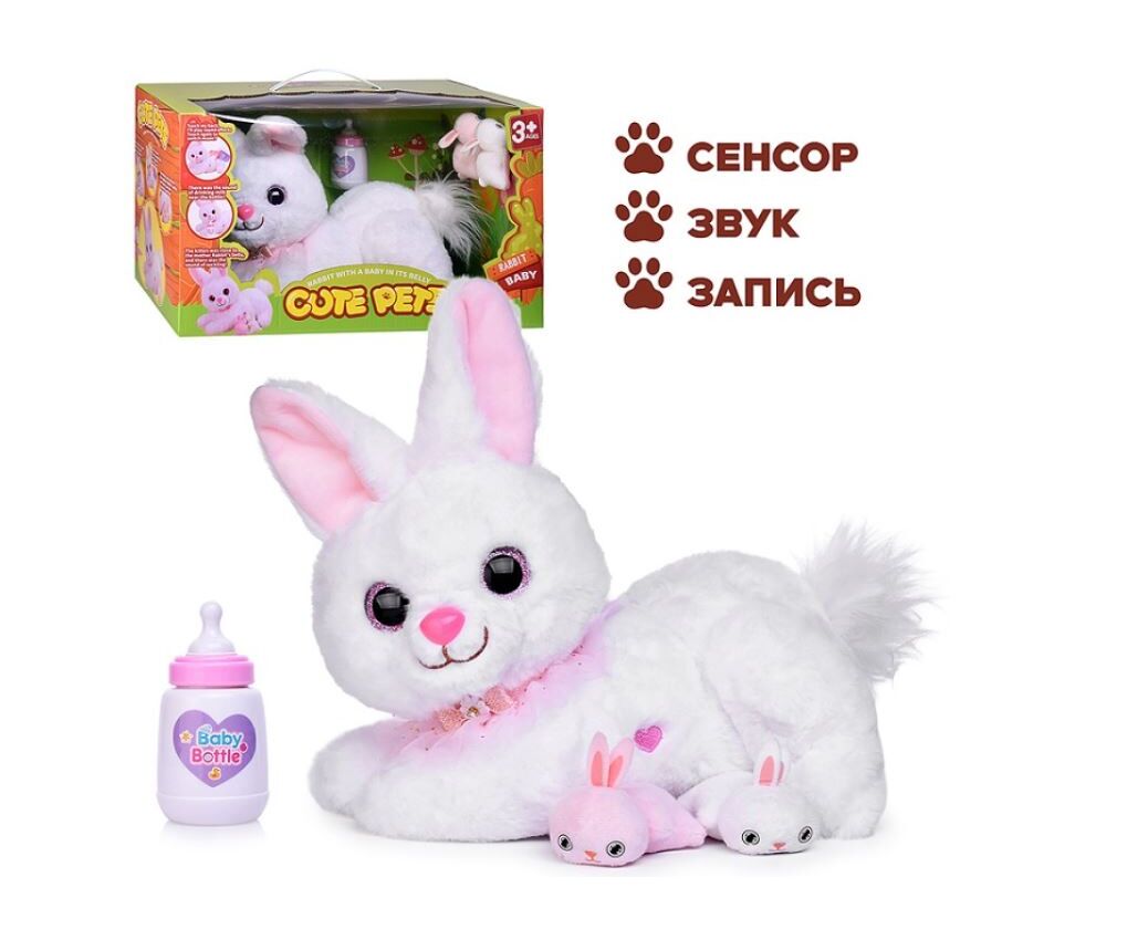 Заяц "Пушистик" на батарейках, в коробке