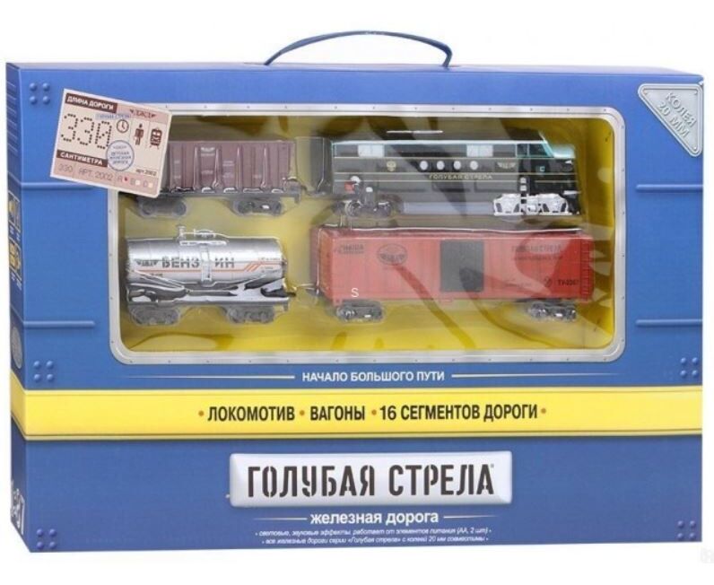 Ж/д Голубая стрела,330 см "Тепловоз, 3 вагона" свет, звук