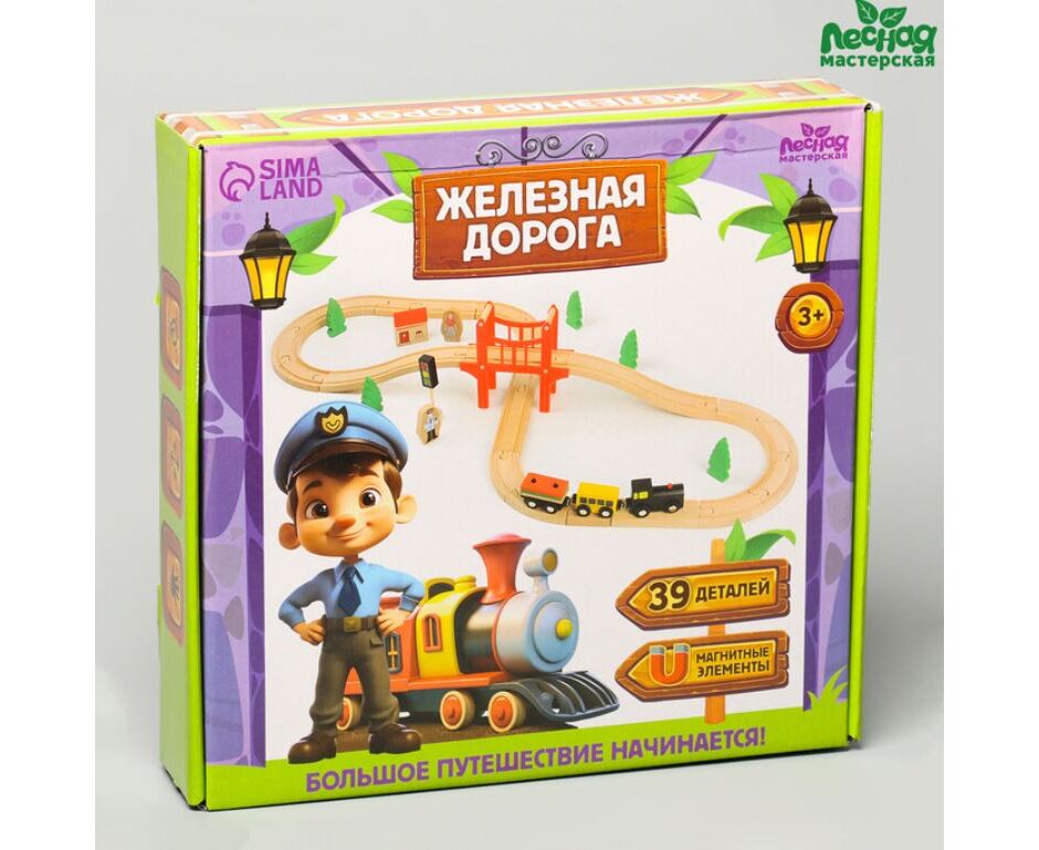 Железная дорога Лесная мастерская "Большое путешествие", с мостом, 39 деталей