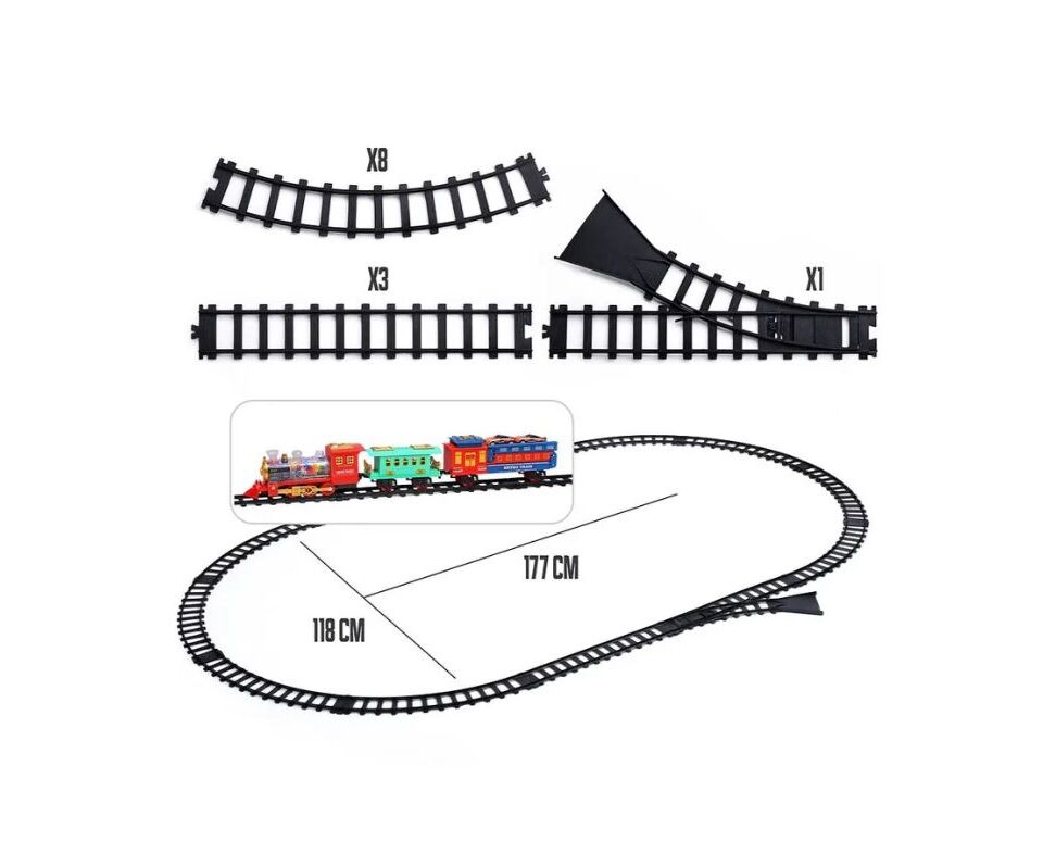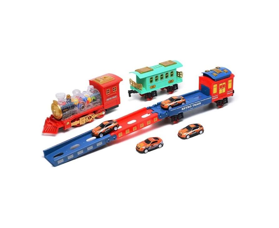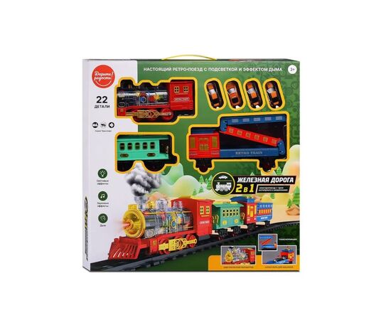Железная дорога + трек катапульта с машинками, с подсветкой, паром